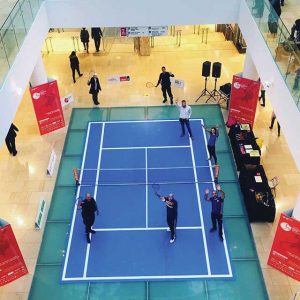 Alternatively, floor graphics can be incredibly effective in transforming the purpose of a space, for instance turning a shopping mall into a recreation destination. Recently, an area of the Core Shopping Centre in Calgary, Alta., was turned into a tennis court using floor graphics that were designed, printed, and installed by Print Three (also in Calgary) as part of a 10-day promotional campaign for the Calgary National Bank Challenger. This attracted families to the space to play a few sets and, as a result, more people wanted to visit and stay longer.