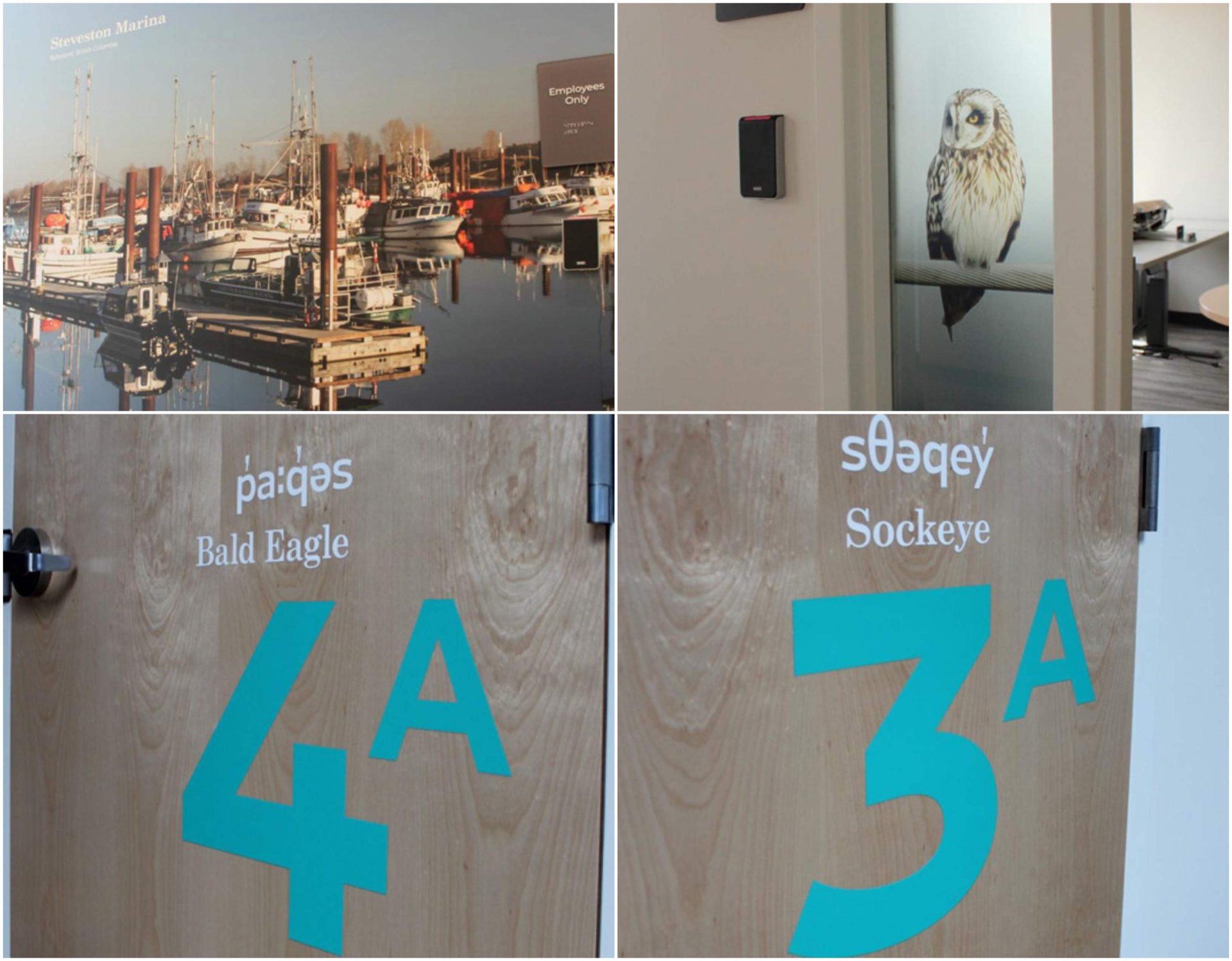 For wayfinding and identification, we produced 14 custom door name signs in print-and-cut vinyl and three washroom signs using cut vinyl applications. Ten vinyl-based QR code decals were also installed outside various offices to support digital navigation. The project brought together more than 40 distinct vinyl applications, delivering a cohesive, professional, and functional signage package across the facility.