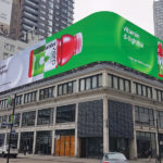 Specifically, the sign went live on June 5, just in time for Warner Bros. Canada to promote the June 9 release of its hit movie, Wonder Woman. Another initial advertiser was Energy Brands, which promoted its Vitamin Water product line. Both used the unique shape of the board creatively, with content developed and laid out for each of its sections.