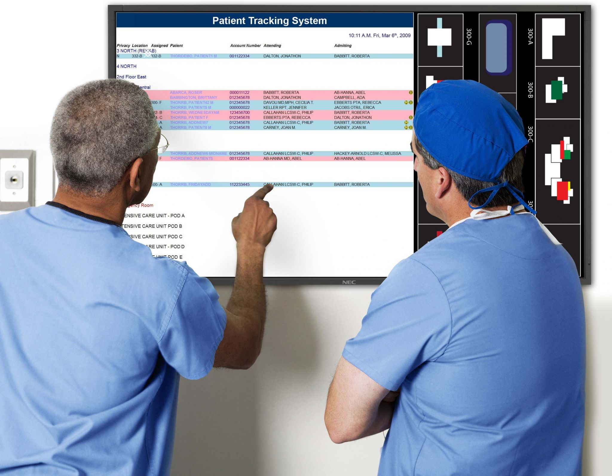 The displays include digital signage in common areas for communications and informational purposes, desktop displays in doctors’ offices and labs for research, interactive displays in conference rooms for team collaboration and high-resolution screens in waiting areas for patients.