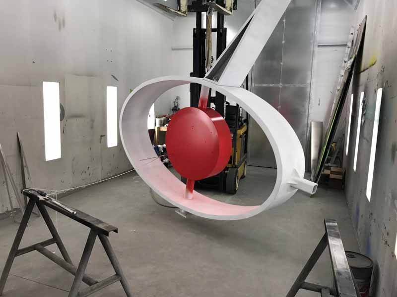 Fortunately, through a tedious hoist and much-needed guidance by two crews in bucket trucks, the sign was successfully slipped into the tubes with no damage to the glass. The bolts were put in place, the power was hooked up, and final touch-ups were added.