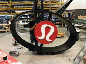 After 14 months of designs, securing permits, and fabrication, Lululemon’s repurposed sign, reflective of the old and the new, was successfully installed.