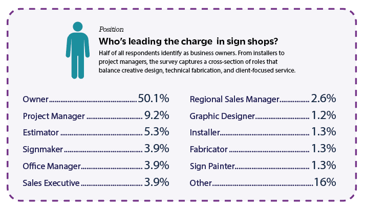Longevity is a defining trait of this sector. Nearly a third of professionals have been working in signage for more than three years, reflecting deep expertise and loyalty within a relatively small, relationship-driven community.