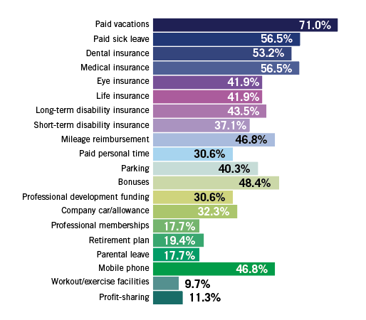 The majority of professionals enjoy paid vacations and health coverage, but benefits such as profit-sharing, retirement plans, and wellness programs remain less common. This reflects both the small-business composition of the industry and evolving priorities around employee well-being.
