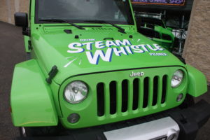The pilsner brewery used to have its vehicles—including a Dodge Charger, Jeep, Toyota FJ Cruiser, Mini Cooper and classic International Scout—painted with a bright green and white colour palette for its sales representatives, but this became a drain on time and funds. So, the company turned to Eminent for digitally printed and laminated films instead.