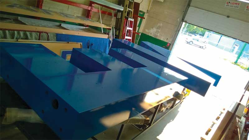 The company’s 27 staff members—and Binx, the shop dog—work out of a 929-m2 (10,000-sf) facility located in the heart of Winnipeg. The business’s success hinges on an overall commitment to customer satisfaction: regardless of project size, team members work with their clients every step of the way—from design to production to installation.