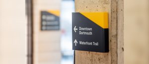 Implementation is important, but we often recommend going further to ensure signs are cared for over time. There should be a plan for maintenance, so installed signs are someone’s responsibility. A wayfinding sign that is damaged or missing reflects poorly on the institution who paid for it, as do signs blocked by branches, snow piles, or other issues.